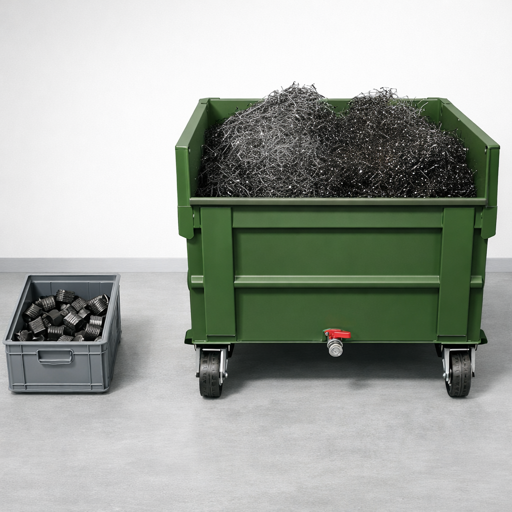 Systèmes mécaniques modulables conçus pour transporter automatiquement les copeaux métalliques — secs ou imbibés de lubrifiant — vers des dispositifs de traitement ou de stockage en optimisant le flux dans l’atelier.